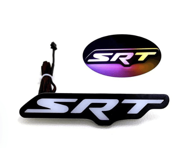 SRT Flow Series/Addressable RGBW LED SRT for the front or rear of your Mopar! Has stainless steel bolts and washers as well as a backing plate so it can easily mount to the front of your Chrysler 300, Dodge Charger, Challenger or Magnum orJeep Grille simply by inserting the two bolts through the grille holes placing the backing plate over the bolts on the back side of the grille and tightening down the nuts. Then plug the 3 Pin (jst) plug into an existing controller or purchase our optional Bluetooth remote which would control the badge by the app on your mobile device. The app has 200 modes as well as allows the ability to make any standard or mixed color, but the Flow series/Addressable is what is going to get you the chasing color modes.