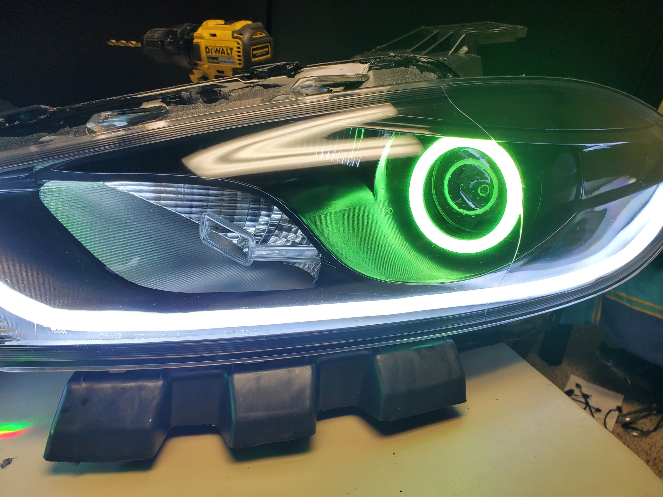 Upgrade to a two channel bluetooth remote, which would allow the projector halo and the demon eye to either sync to be the same color, or they can be a separate color and/or mode.