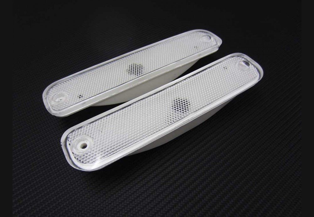 These lenses have been modified from the OEM to delete the raised trim. The result is a cleaner and lower profile side marker. Housings are not included unless purchased!